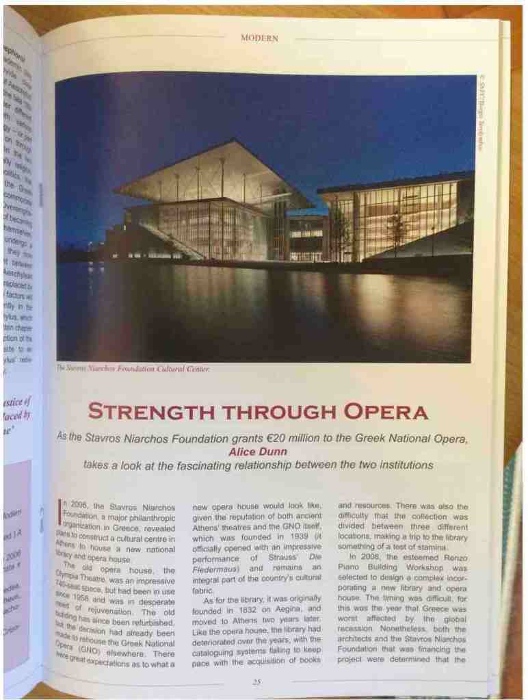 I wrote a story on the relationship between the Stavros Niarchos Foundation and the Greek National Opera for ARGO Magazine.